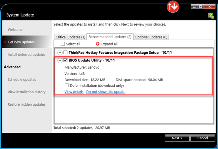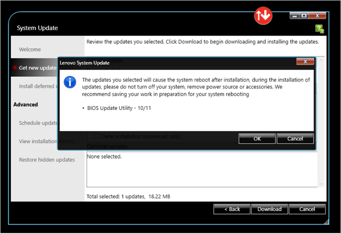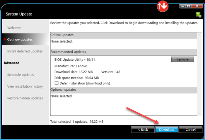 6. At this point, you can also opt to download the BIOS updates but defer installing them.