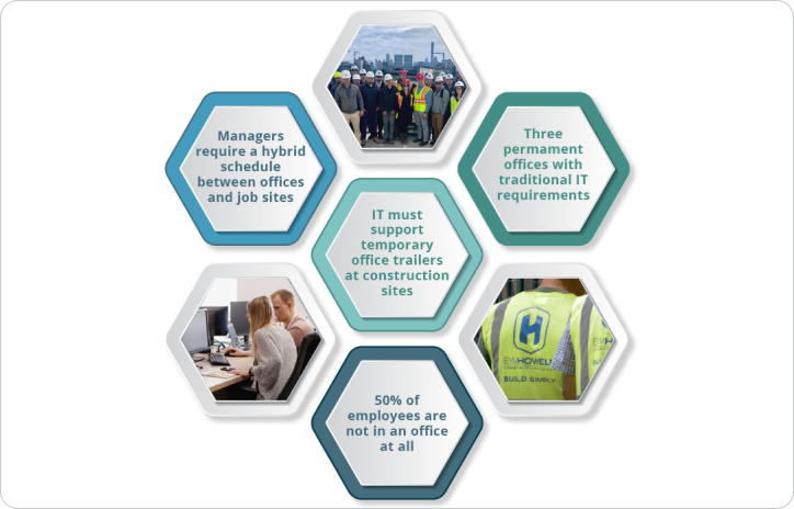 In addition to remote work, the EW Howell IT department is responsible for enabling unrestricted end-user productivity within temporary office trailers on construction sites. These act as a home base for site activities, requiring IT resources that mimic a traditional office but with the challenge of a temporary location.