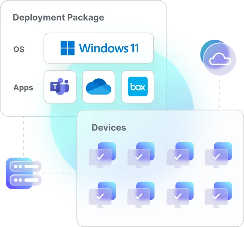 Immediately connect SmartDeploy’s disk imaging software to your corporate Amazon S3, Box, Dropbox, Google Drive, or OneDrive account. Deploy seamlessly to devices on and off your local network.